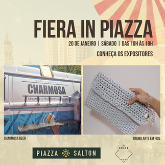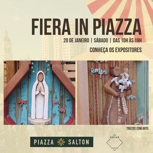 O Nível Praça do Piazza Salton será palco de uma tarde de artesanato, diversão e valorização dos artesãos da região. Em parceria com a Criar Feiras, o Piazza Salton realiza a I Fiera In Piazza, que contará com 11 expositores. Com entrada franca, a Fiera ocorre das 10h às 19h do sábado, dia 20.